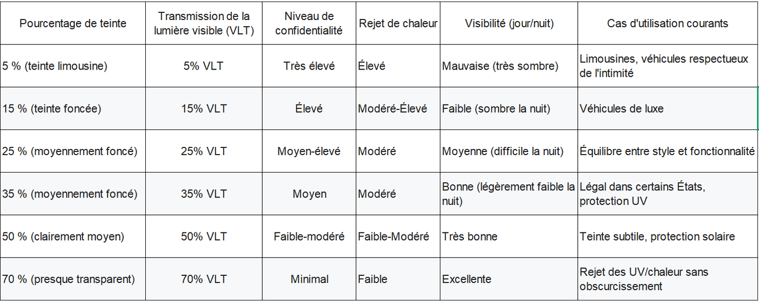 Guide de sélection : Comment choisir différents types de teintes de vitres